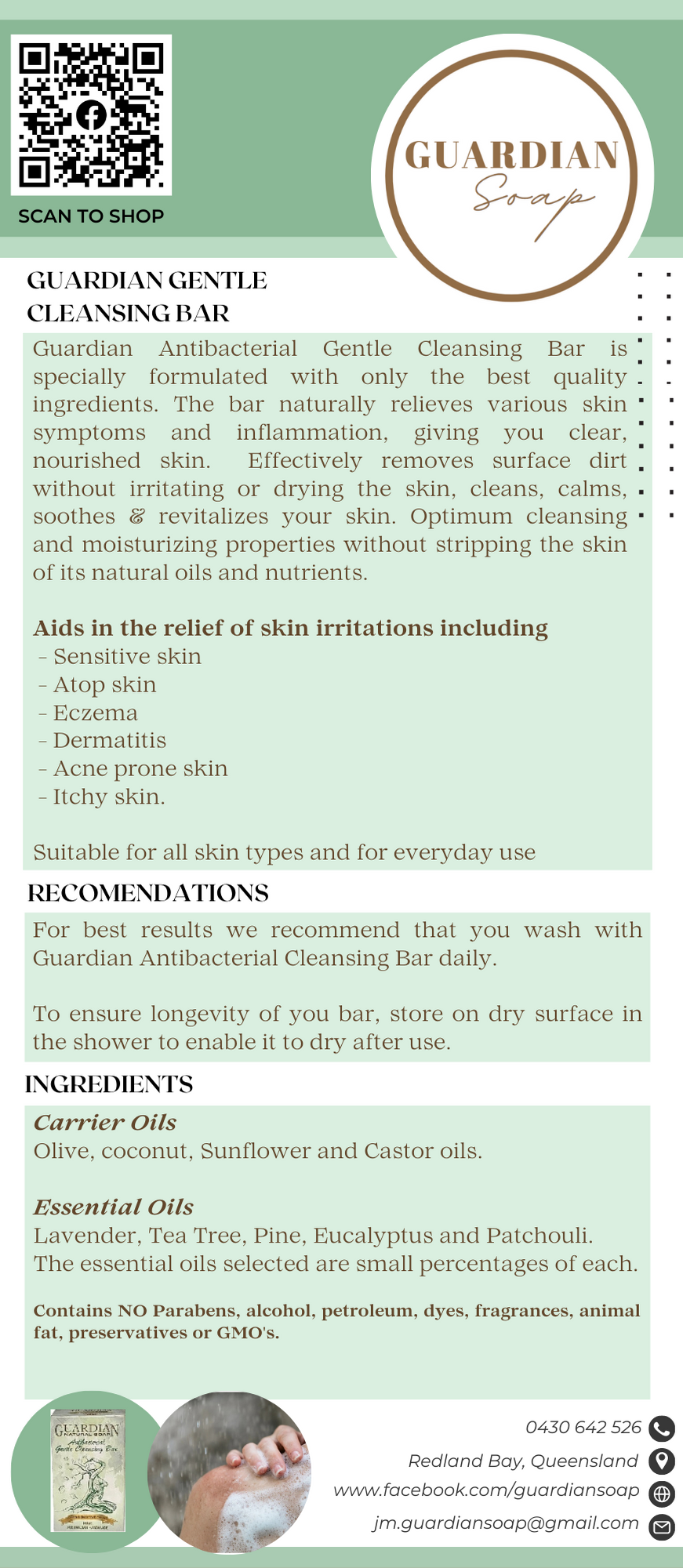 Guardians antibacterial Gentle Cleansing Bar naturally relives various skin symptoms and inflammations, giving you clear, nourished skin.